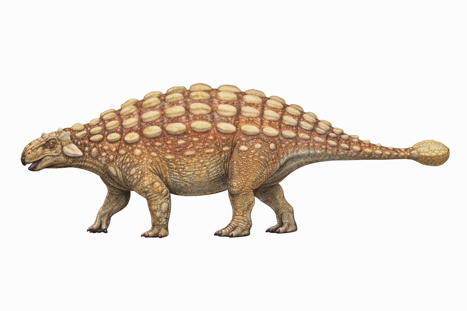 أنكيلوصورس الدبابة الحية في عصره؛ عملاق مدرّع طوله 8 أمتار مغطى بصفائح عظمية وتعلو ذيله مطرقة هائلة، عاش في نهاية العصر الطباشيري بأمريكا الشمالية إلى جانب تيرانوصورس.