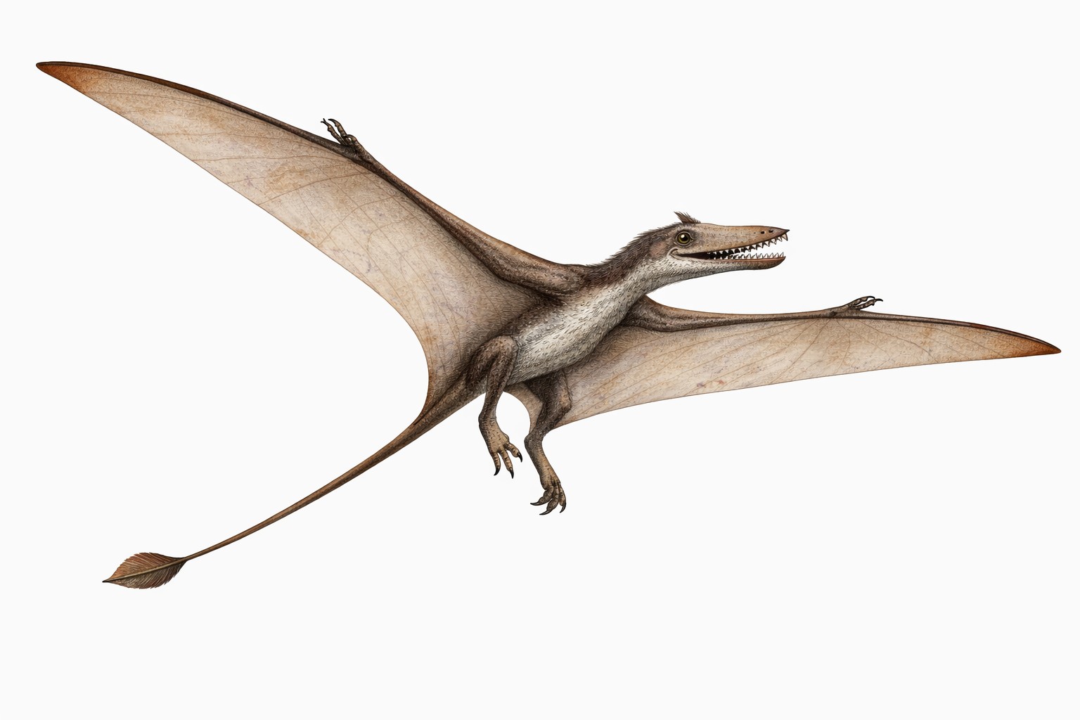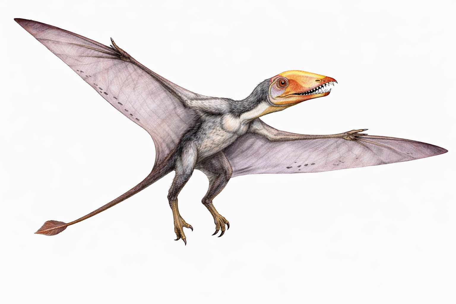 بتيروداكتيلوس أول زاحف طائر يُعترف به في تاريخ العلم؛ طار بجناحين لا يتجاوزان 75 سنتيمتراً فوق بحيرات أوروبا الجوراسية قبل 150 مليون سنة، وحفرياته تأتي من نفس طبقات ألمانيا التي حفظت أولى الطيور.
