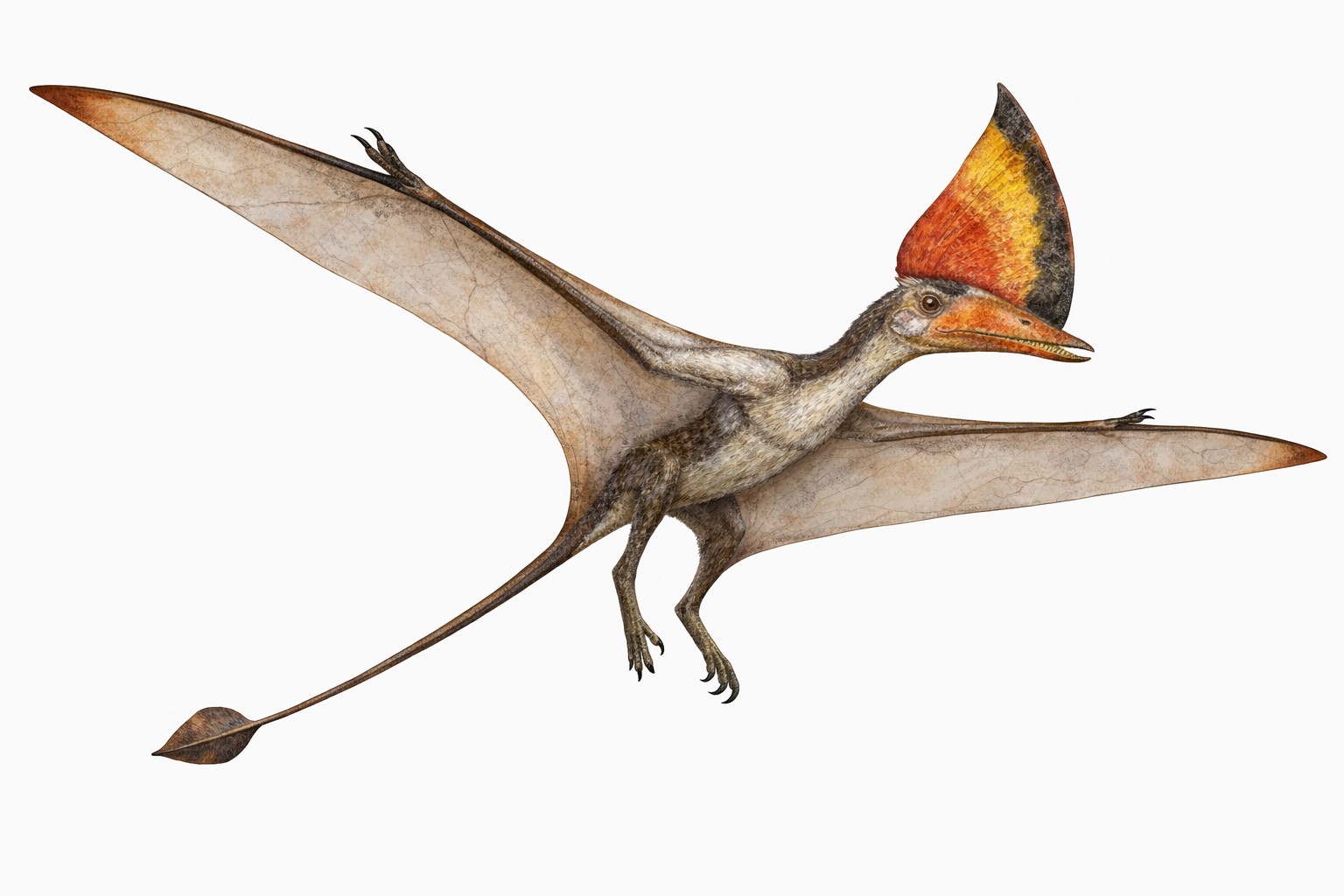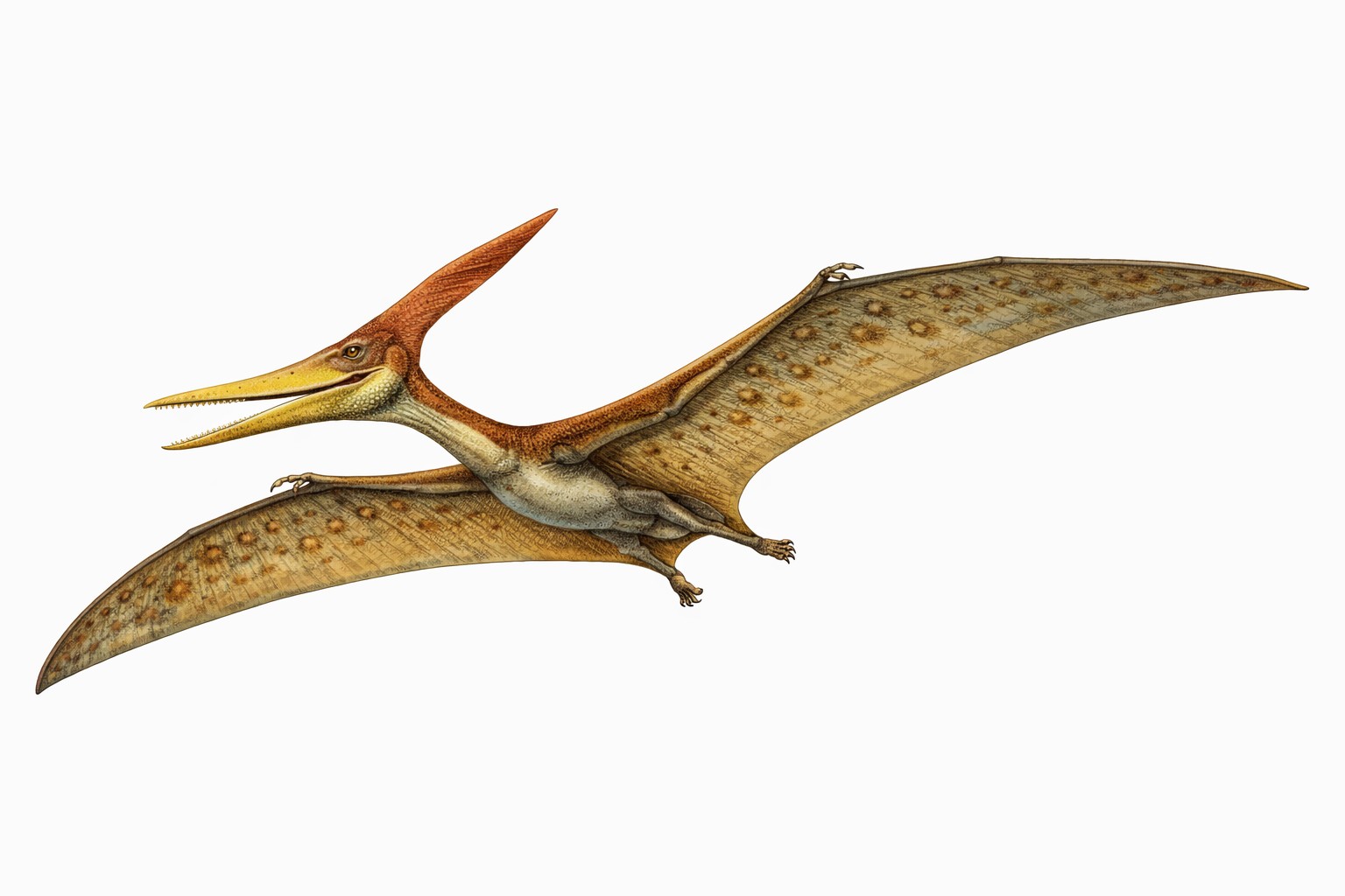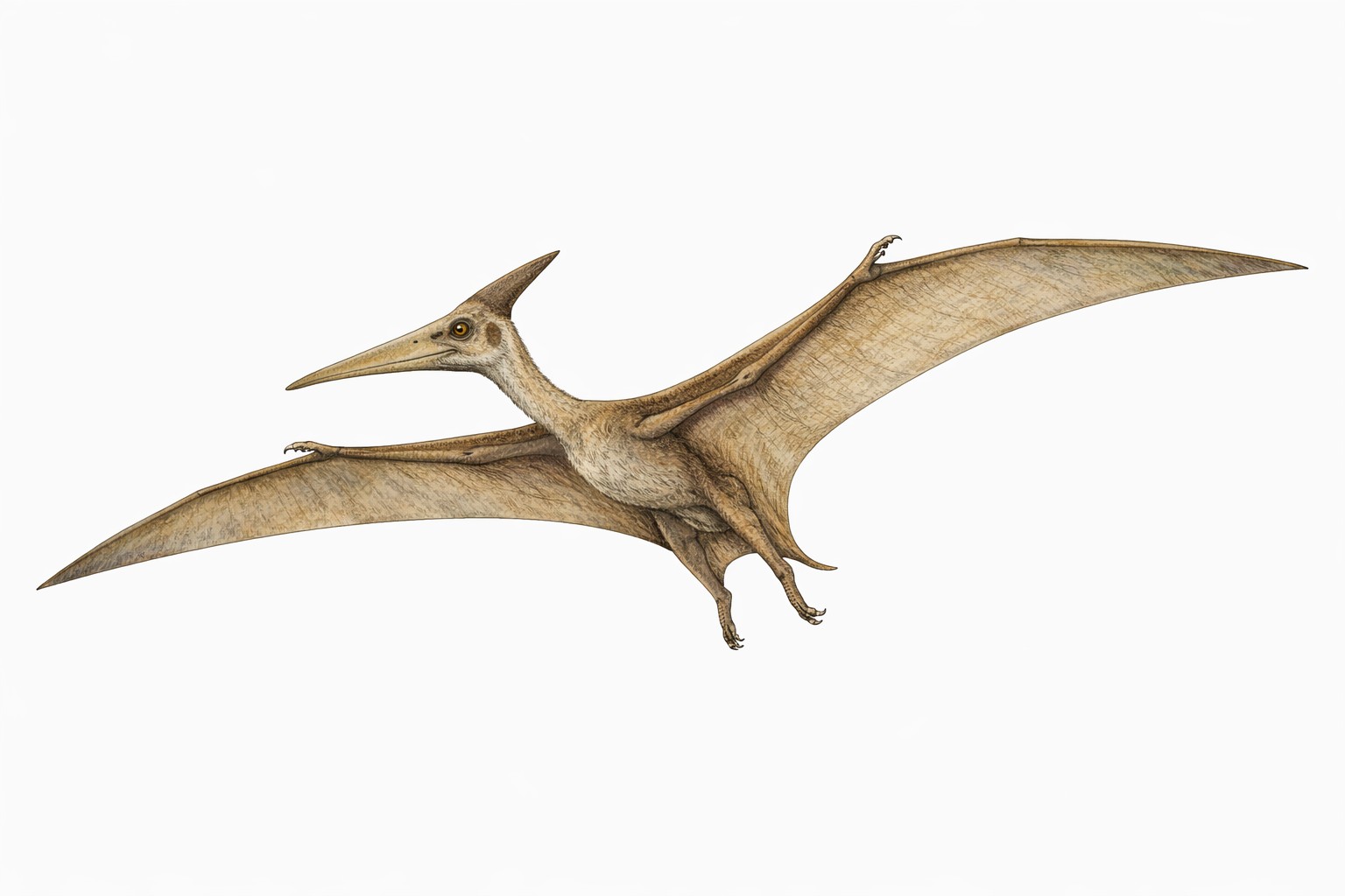 بتيرانودون أشهر الزواحف الطائرة؛ كان يُحلّق بجناحين يصلان 7 أمتار فوق بحار أمريكا الطباشيرية قبل 85 مليون سنة، يصطاد الأسماك بمنقاره الطويل بلا أسنان.