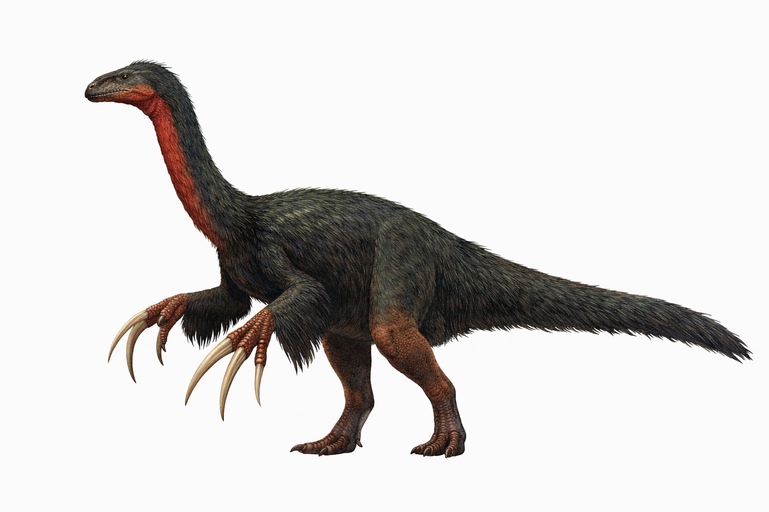 ثيريزينوصورس سحلية المنجل من طباشيري منغوليا؛ ثيروبود عاشب طوله 9-10 أمتار بمخالب تتجاوز 50 سم — أطول مخالب حيوان بري عرفه التاريخ الطبيعي.